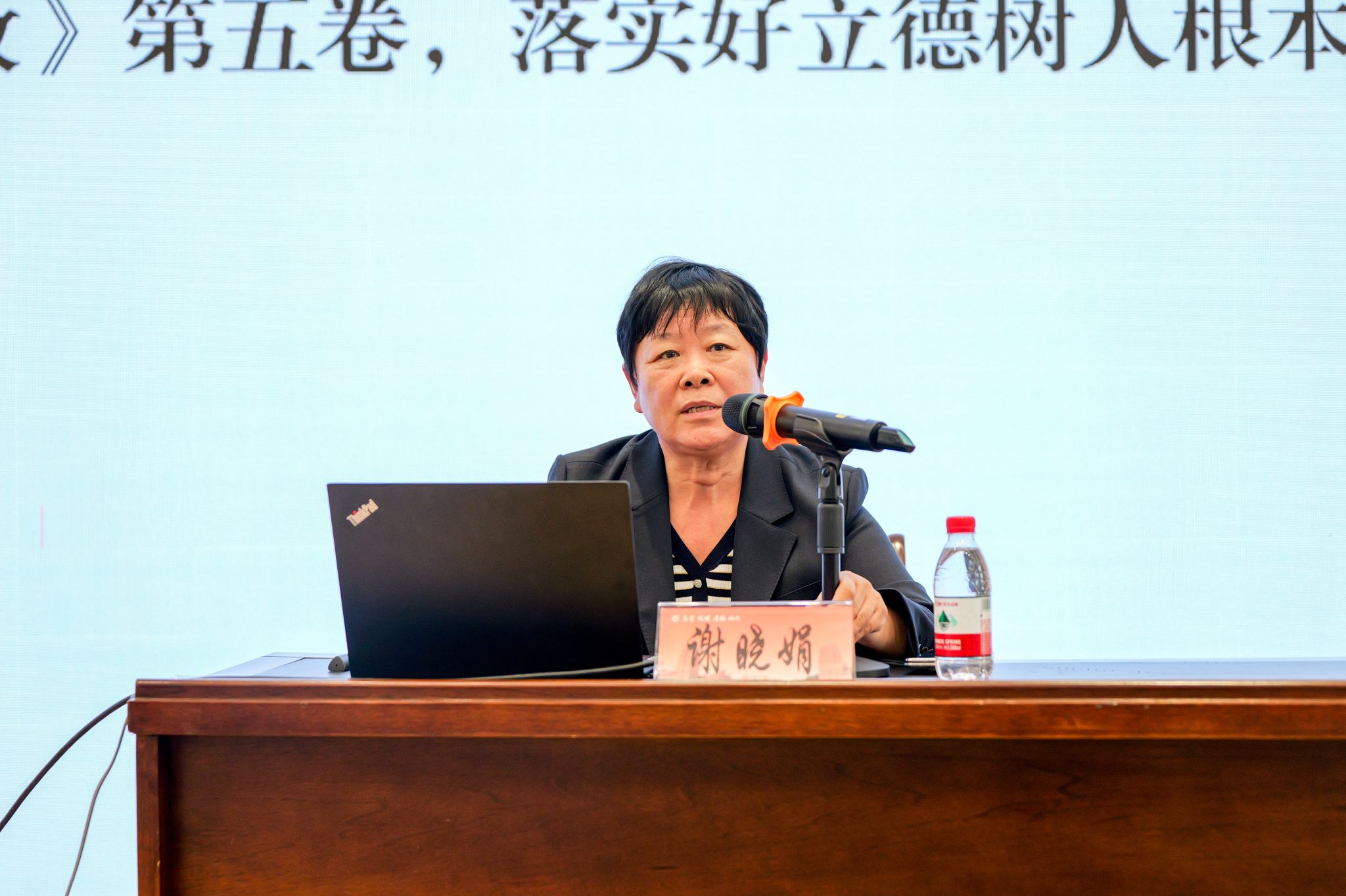 培训会特邀辽宁大学马克思主义学院院长谢晓娟教授进行专题辅导。谢晓娟教授围绕《习近平谈治国理政》第五卷的总体结构、十八个专题的主要内容以及四个鲜明特色进行了系统梳理和深刻解读。重点阐释了书中关于把握新发展阶段、贯彻新发展理念、构建新发展格局,推动高质量发展;发展全过程人民民主;推进社会主义文化强国建设;坚持人与自然和谐共生;推进全面从严治党等一系列重大理论和实践问题。